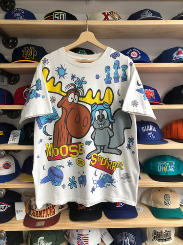 Vintage 1993 Rocky & Bullwinkle All Over Print Tee Size Large