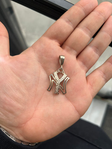 Vintage New York Yankees Large .925 Silver Diamond Cut Pendant Charm